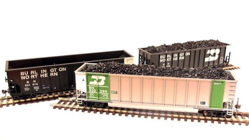 Als Beispiel: Oben und Links – H0 Bethgon Coal Car & H0 100 Ton 3-Bay Coal Hopper / 2013