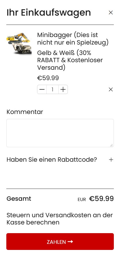 Ich bin da mehr als skeptisch. Denn es gibt da den Shop “Shopkooh“. Der Verkauft da aktuell 400 Stk. MINI Bagger. Laut deren Bilder werden die in Holzkasten geliefert. Sind aus Alu, Metall und haben eine Hydraulik. Der Massstab soll 1:18 sein. Vergesst Es. Massstab 1:24 und aus Plastik! Link: https://www.shopkooh.space/products/mini-excavator-this-is-not-just-a-toy?variant=214758068