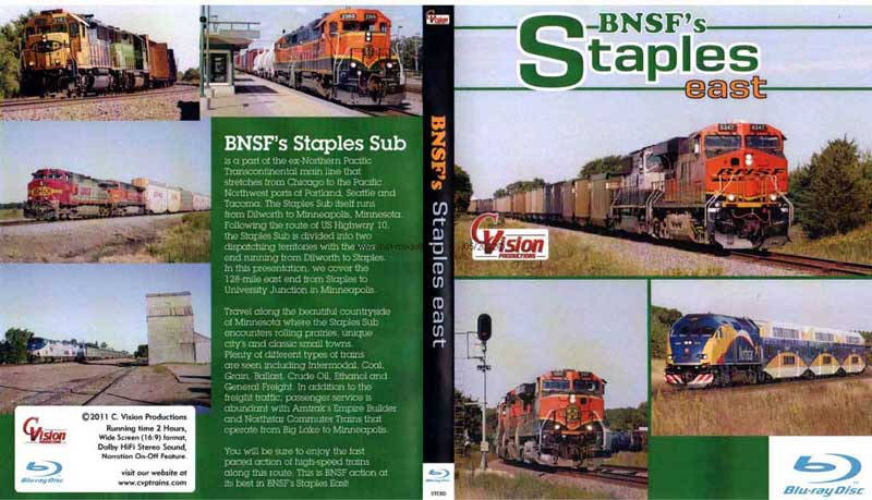 Travel along the beautiful countryside of Minnesota where the Staples Sub encounters rolling prairies, unique city’s and classic small towns. Plenty of different types of trains are seen including Intermodal, Coal, Grain, Ballast, Crude Oil, Ethanol and General Freight. In addition to the freight traffic, passenger service is abundant with Amtrak’s Empire Builder and Northstar Commuter Trains that operate from Big Lake to Minneapolis.