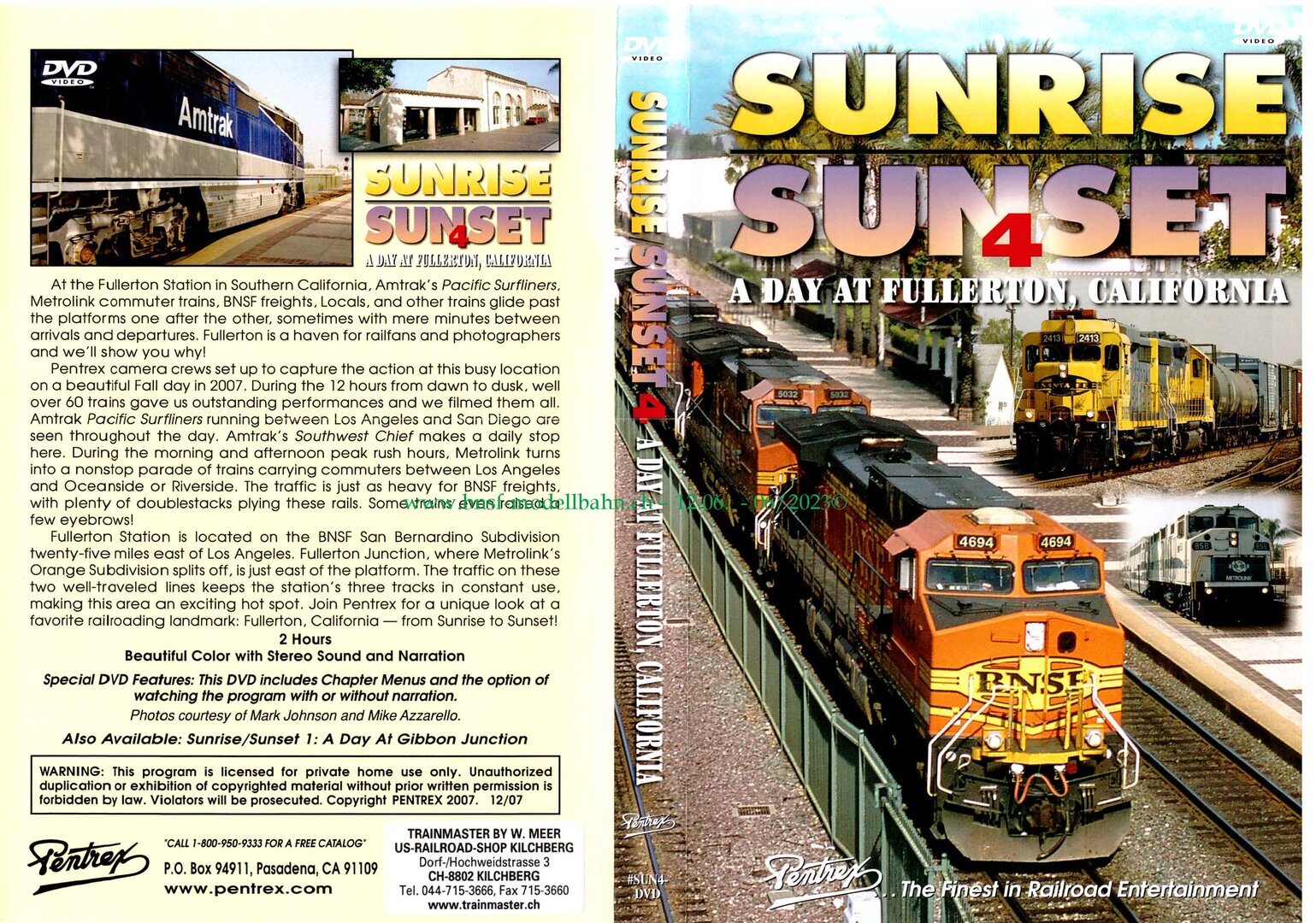 Fullerton Station is located on the BNSF San Bernardino Subdivision twenty five miles east of Los Angeles. Fullerton Juction, where Metrolink’s Orang Subdivision splits off, is just east of the platform. The traffic on these two well-traveled lines keeps the station’s three tracks in constant use, making this area an exciting hot spot. Join Pentrex for a unique look at a favorite railroading landmark: Fullerton, California – from Sunrise to Sunset!
