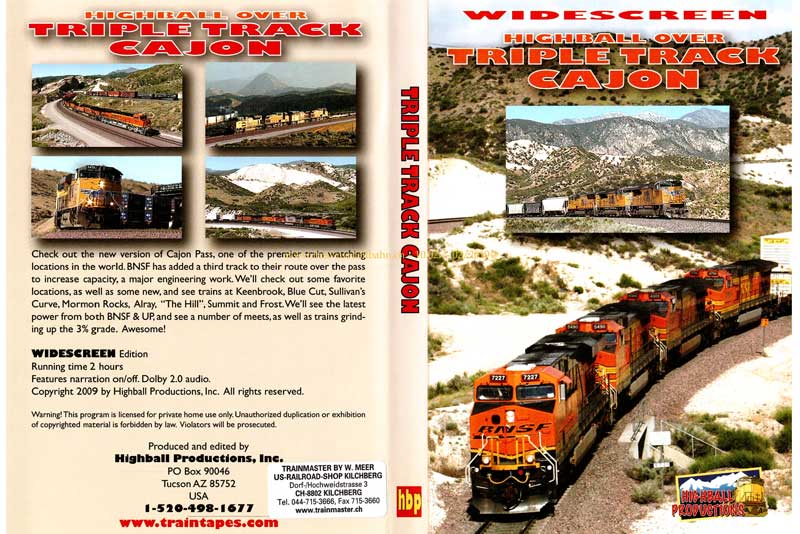 Check out the new version of Cajon Pass, one of the premier train watching lpcations in the world. BNSF has added a third track to their route over the pass to increase capacoty , a major engineering work. We'll mcheck out some favorite locations, as well as some new, and see trains at Keenbrook, Blue Cut, Sullivan's Curve, Mormon Rocks, Alray, "The Hill", Summit and Frost. Ww'll see the latest power from both BNSF & UP, and see a number of meets, as trains grinding up the 3% grade. Awesome!